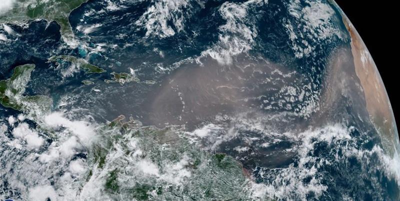 A NASA satellite first observed the dust plume over the North Atlantic Ocean about June 13. By June 18, the dust from Africa’s west coast had extended to the lesser Antilles.